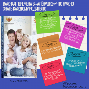 С 1 сентября 2025 года детский сад № 1 «Алёнушка» получил статус региональной площадки по внедрению программы Просвещения. Особое внимание в ней уделяется работе с родителями — ведь именно семья играет ключевую роль в развитии ребёнка. Разберёмся, как будет выстраиваться это взаимодействие.